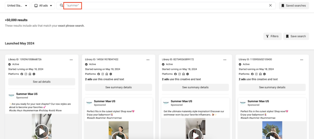 📝 Exact phrase search: Enclose your search terms in quotes to find ads containing that exact phrase. This saves you from wading through irrelevant ads.