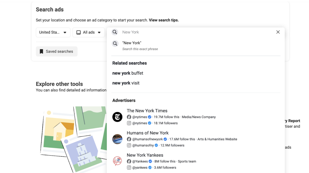 The Ad Library lets you save ads you find interesting, and then you can organize them into collections for easy reference later on.