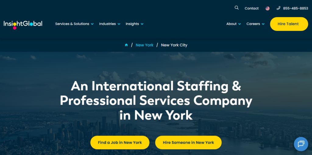 Insight Global is a staffing agency in New York City that specializes in connecting job seekers with temporary, permanent, and contract positions across various industries.