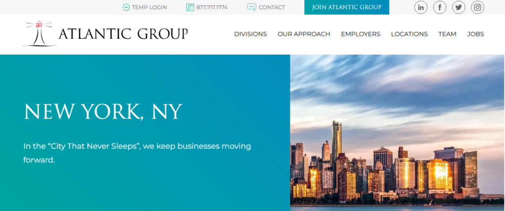 Atlantic Group is a recruiting and executive search agency in New York City, specializing in providing staffing solutions across various sectors.