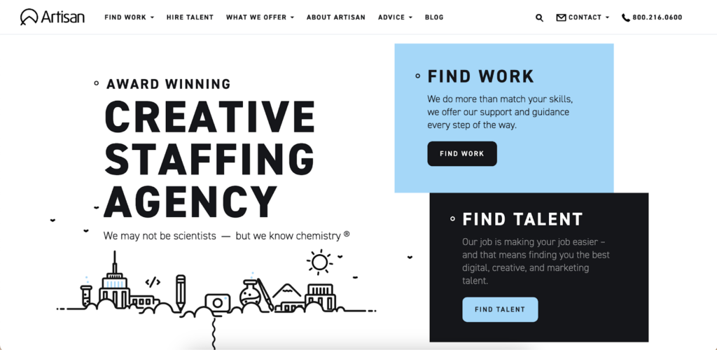 Artisan Talent is a staffing agency that connects clients with top digital, marketing, AI, and creative professionals.