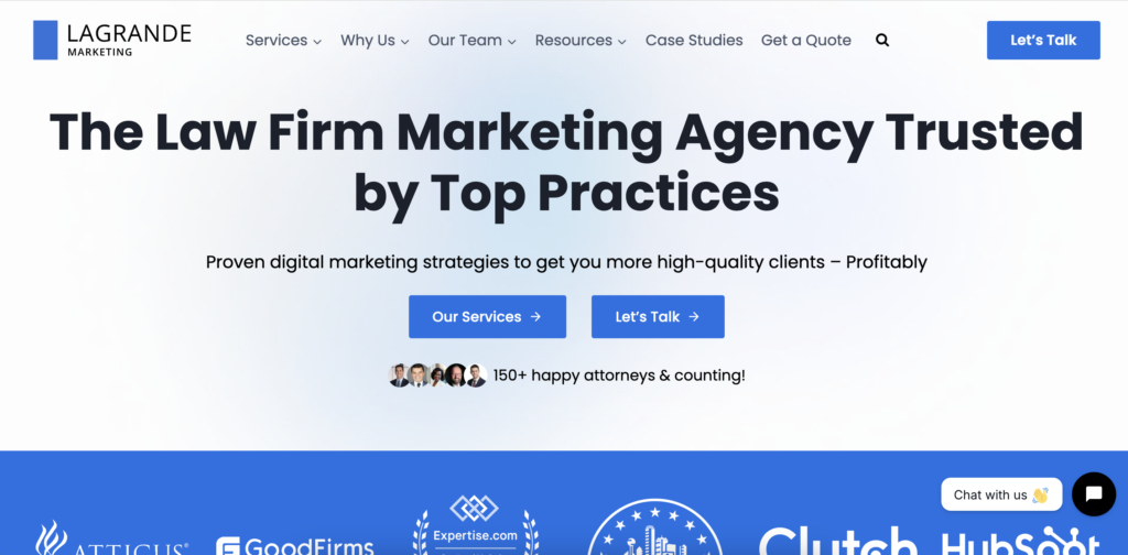 - LaGrande Marketing: LaGrande Marketing is a law-firm-focused agency that delivers ROI-driven, fully integrated digital marketing, centered on law firm SEO and tailored long-term strategies, to help small and midsize firms boost visibility, generate high-quality leads, and achieve measurable growth.