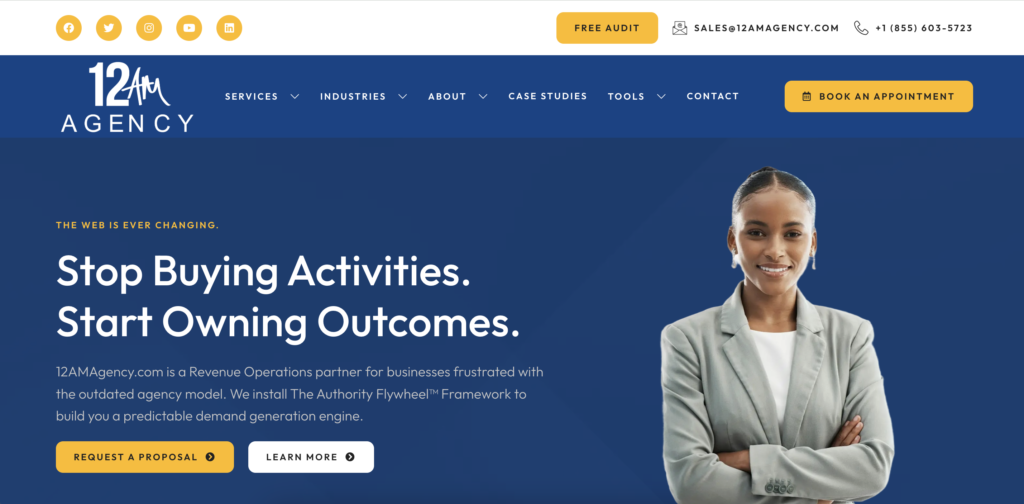 Known for its ROI-focused strategies, 12AM Agency positions itself as a strategic growth partner rather than a traditional vendor.