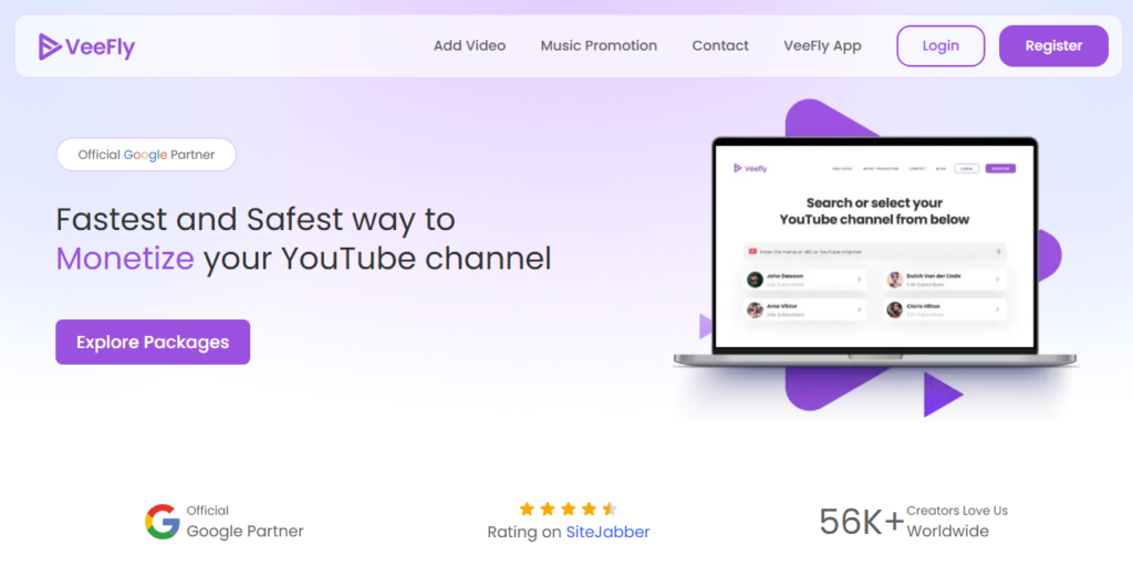 If you’re uncomfortable with pure watch-hour purchase sites and prefer something that looks closer to paid promotion, VeeFly plays in that space.