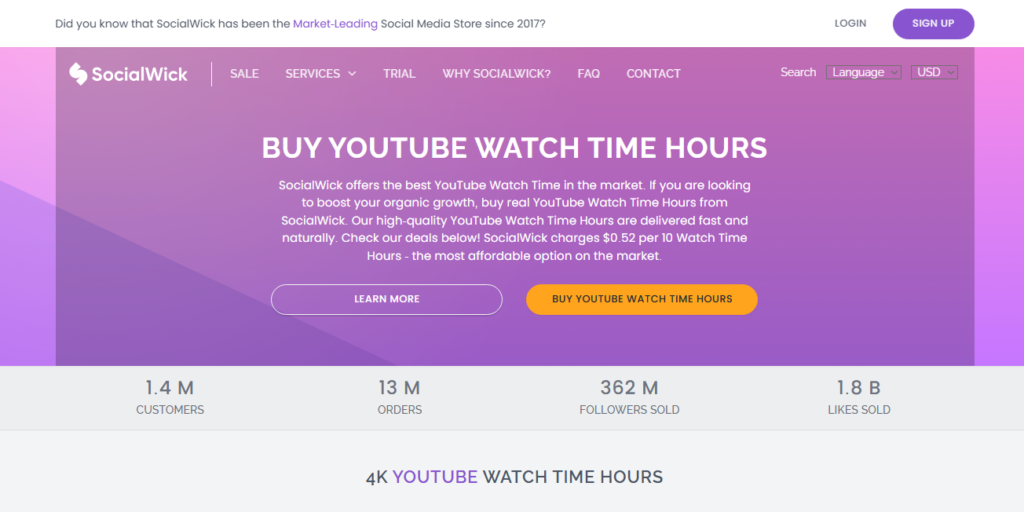 It covers multiple networks and sells everything from followers to views to engagement packages. You can buy YouTube watch time as part of that mix, but watch hours are not the sole focus of the platform.