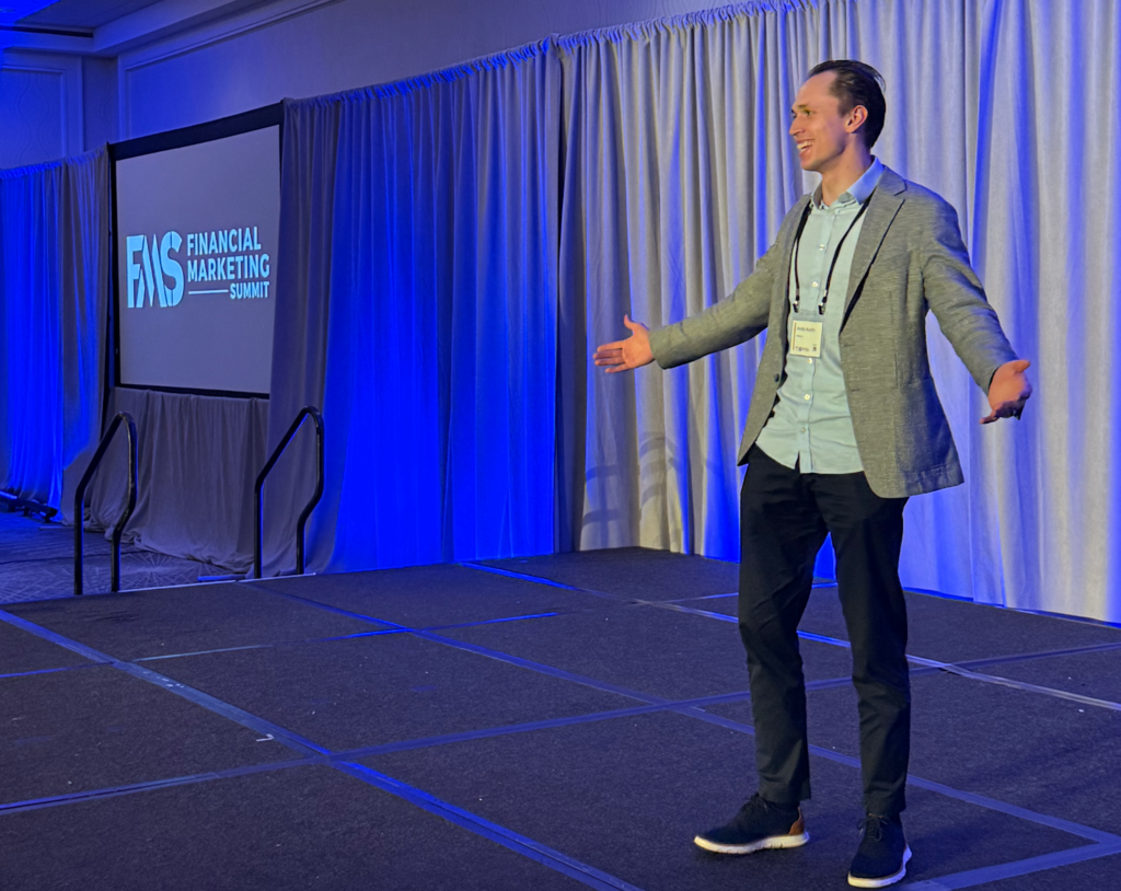 Adsora Founder and CEO Andrev (Andy) Austin on stage at Financial Marketing Summit
