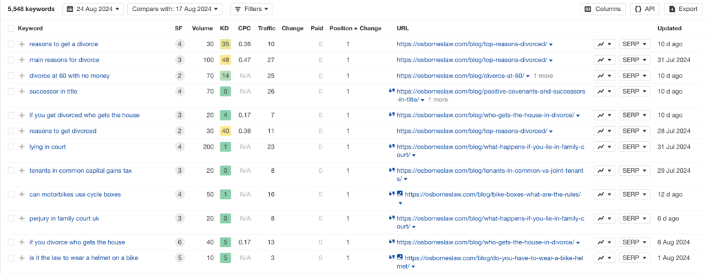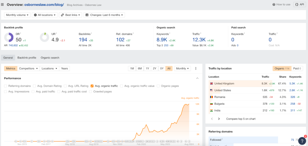 Over a short period, Osbornes Law experienced significant growth in organic traffic.