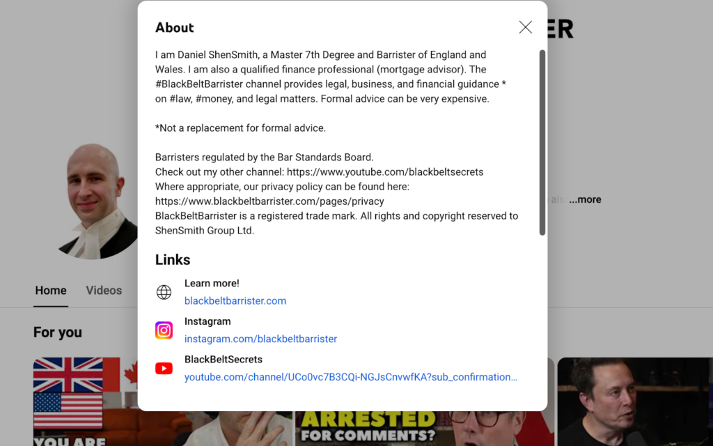 Known as the BlackBeltBarrister, Daniel combines his legal expertise with a strong digital presence, offering educational content through YouTube and Instagram.