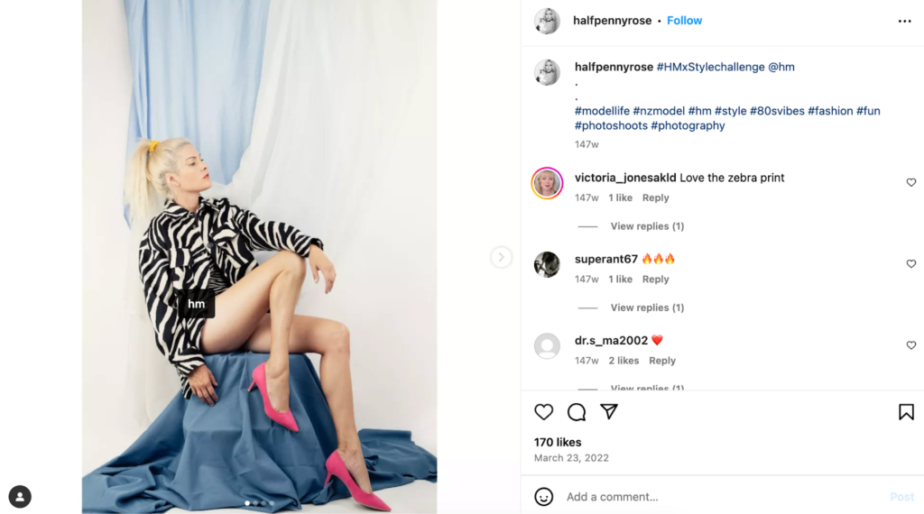 H&M encourages customers to share outfits through branded hashtags, turning everyday buyers into part of the brand experience.