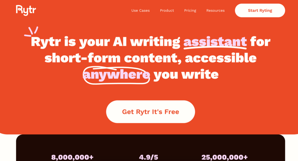Rytr stands out as one of the most affordable AI writing tools in 2025. Despite its simple interface, it delivers high-quality content for blogs, emails, and product descriptions.